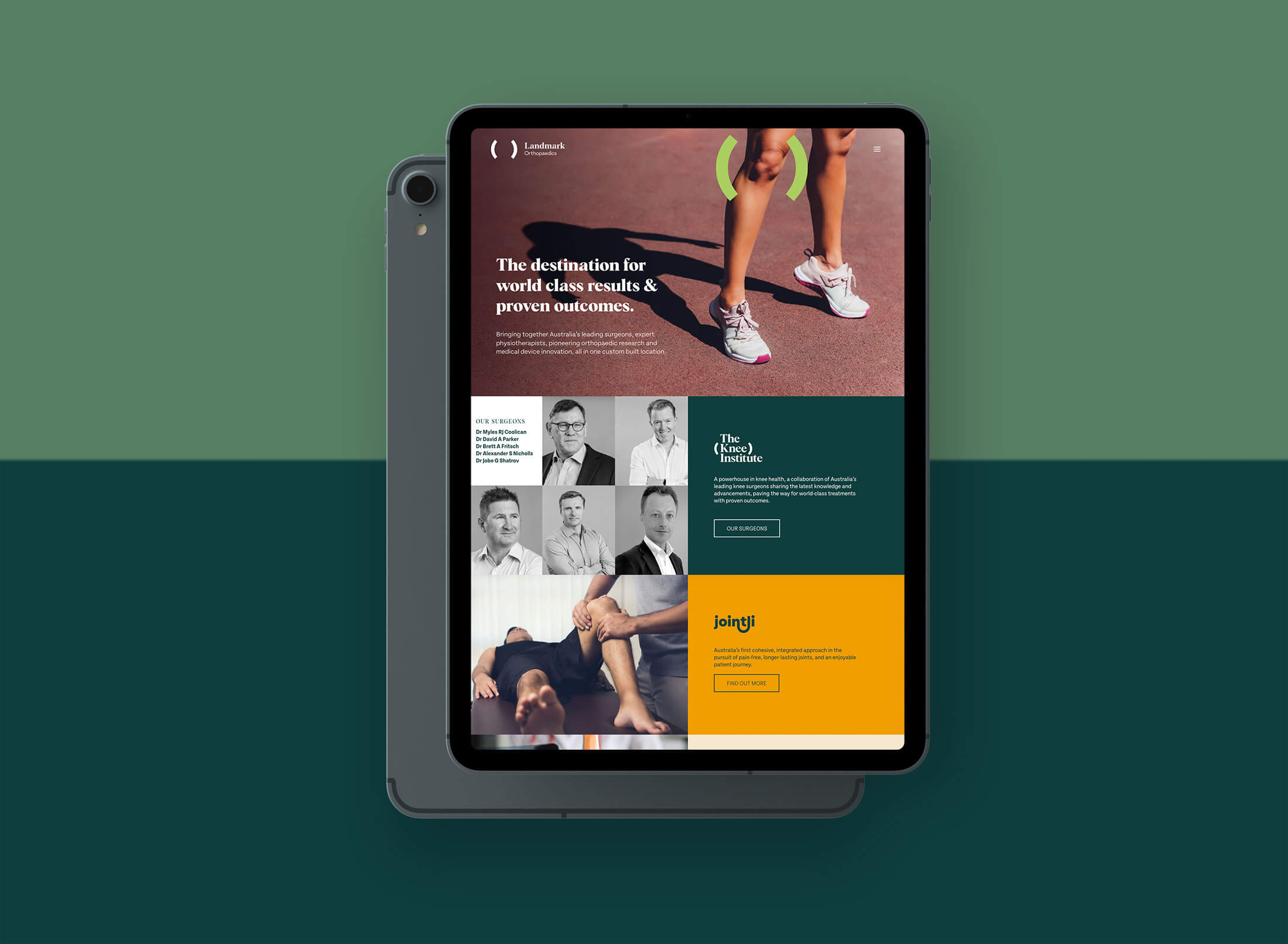 A clear brand architecture strategy (allowing each specialist practice to retain individuality, and come together as an expert team), group purpose, key messaging, compelling EVP, brand strategy were developed to position Landmark Orthopaedics as the go-to destination to access Australia’s top orthopaedic specialists working collaboratively under one roof and for one reason - the best results for patients.
